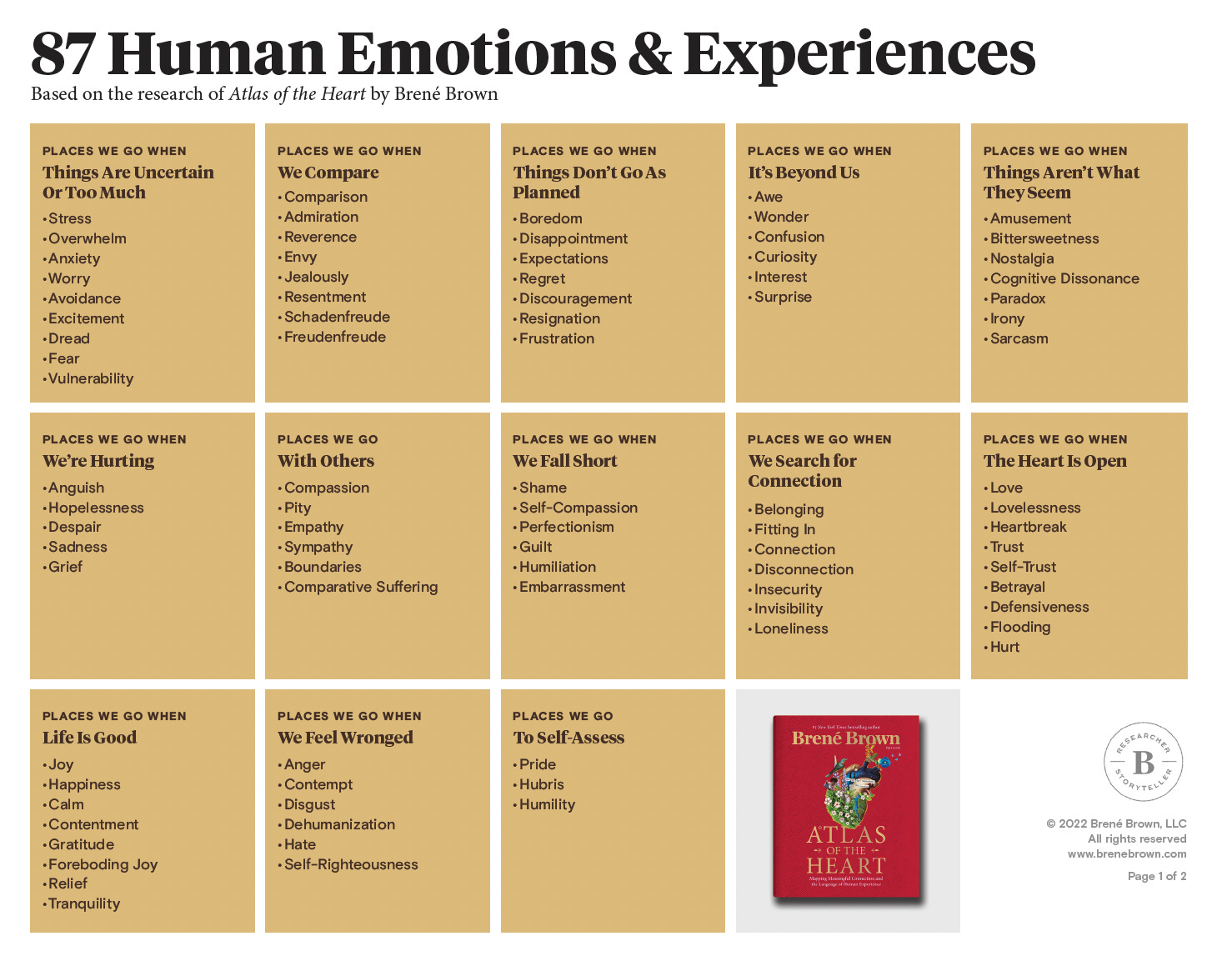 In my humble opinion, Brenee Brown’s Atlas of the Heart is a seminal reference manual for songwriters - really, any writer. This graphic helps illustrate why. Think about the music you really love and look at this list. 💡